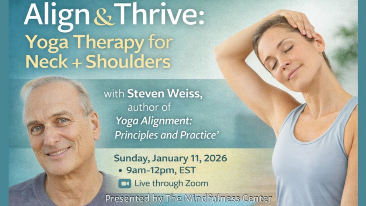 Join The Mindfulness Center and Dr. Steven Weiss, DC, C-IAYT, acclaimed yoga therapist and author of Yoga Alignment: Principles and Practice, for this insightful and practical workshop designed to transform how you feel, move, and teach in the neck, shoulders, and upper body. Explore the “why” behind effective alignment and the “how” of therapeutic correction, with clear, practical takeaways for both personal practice and professional instruction, including: